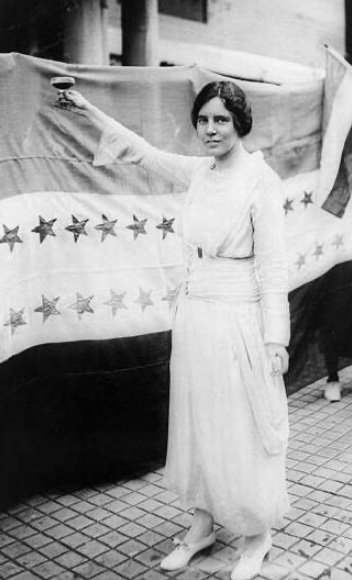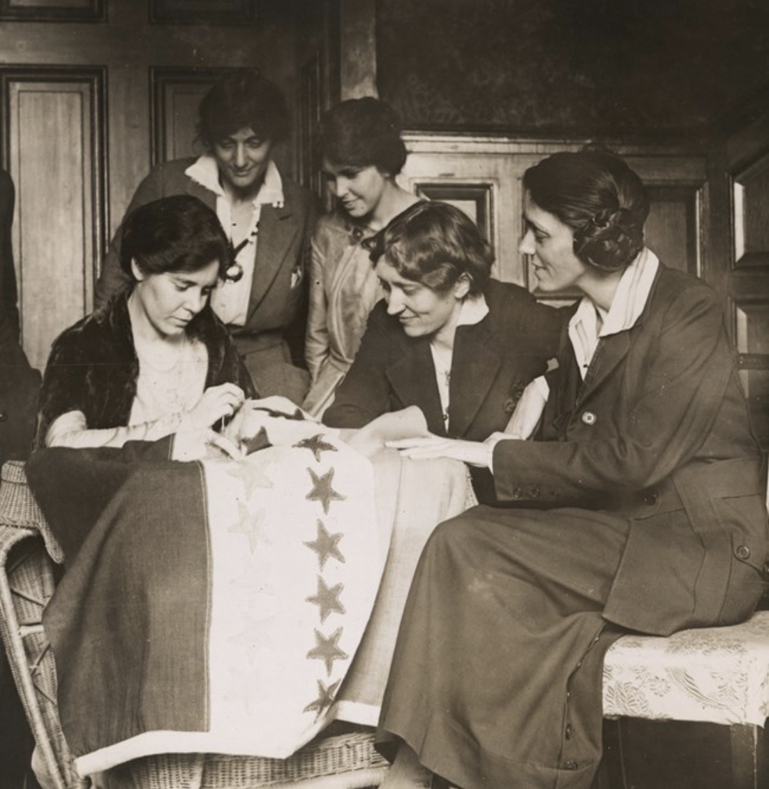 Alice Paul sewed a star on the National Woman's Party suffrage flag each time a state voted to ratify the 19th amendment. Library of Congress